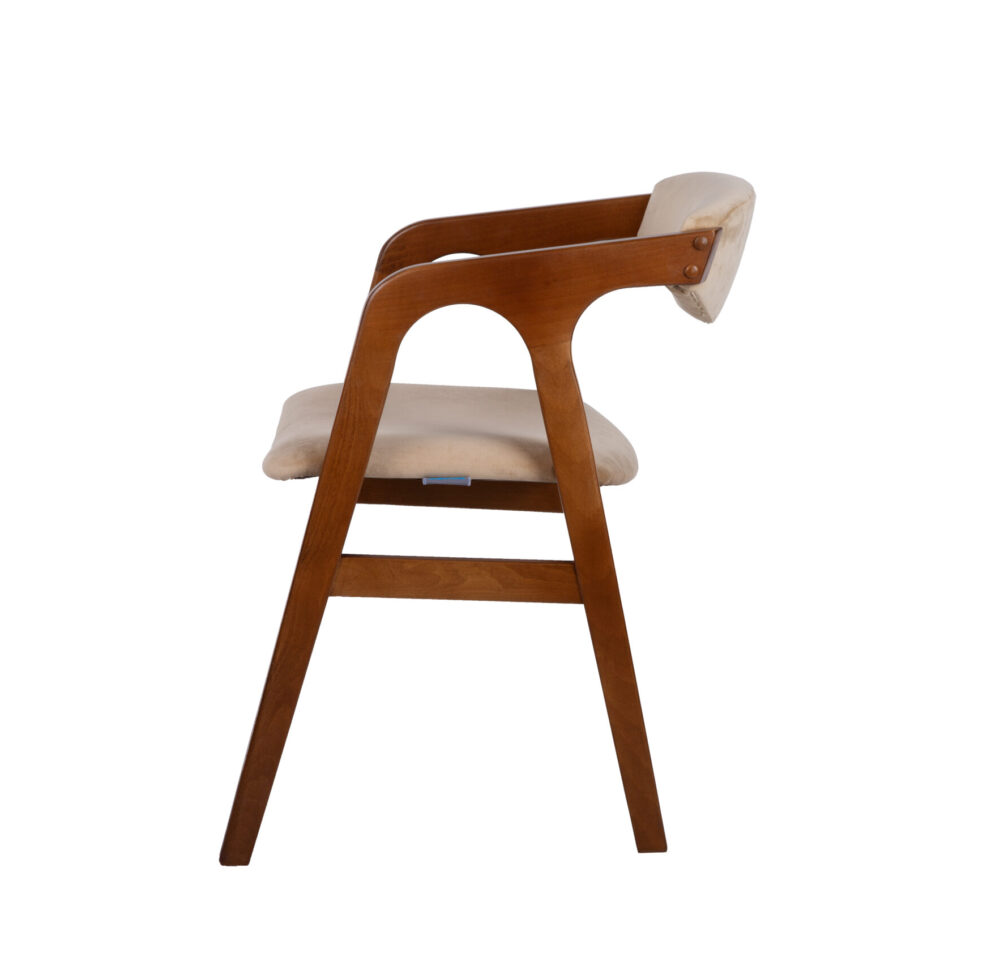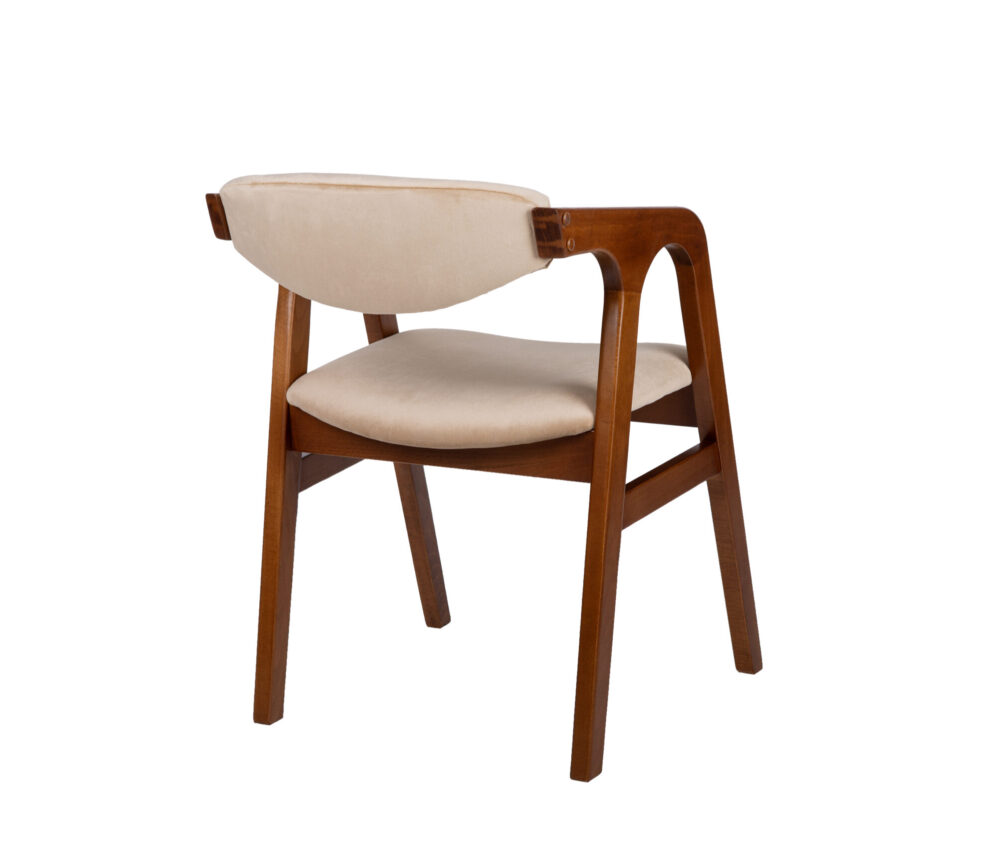 Scaun din lemn masiv de fag, finisat cu lac transparent pe bază de apă.